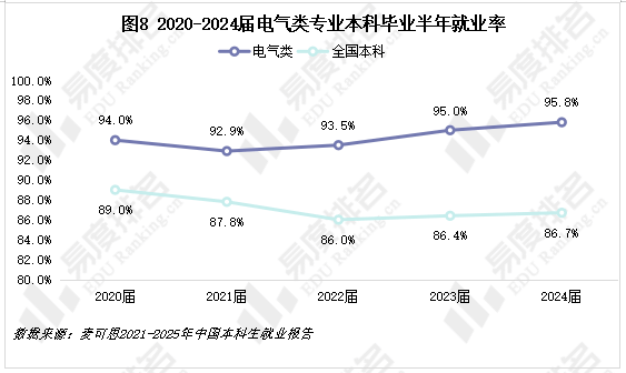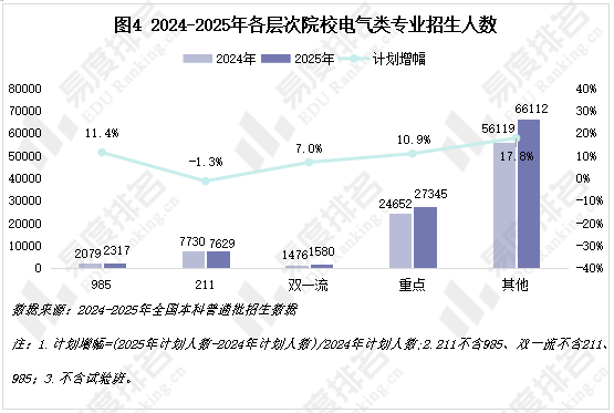 “电”驱,“智”联将来。当全球能源转型的海潮取人工智能的交汇,电气类专业正从保守的动力心净跃升为赋能千行百业的聪慧大脑。无论是点亮一盏灯,仍是驱动一辆智能汽车,抑或是支持起整个数字世界的算力需求,都离不开电气手艺的深层改革。那电气类近年招生登科、培育特色及就业情况若何呢?纵不雅五年间,电气类专业扶植正处于一个高速扩张周期,全国高校新增电气类专业点高达100个。专业点新增数量呈现加快增加的态势,特别正在2022年后送来迸发,2025年新增量是2020年的近三倍。 电气类专业的新增并非只正在保守标的目的上的数量叠加,进一步向智能化、消息化、互联化标的目的扶植。保守电气工程及其从动化新增专业点数量最多,电气工程取智能节制、智能电网消息工程是电气取计较机、节制手艺深度融合的典型代表,别离新增28、24个专业点。 电气类专业招生人数逐年大幅添加,本年打算招生超10。4万人,初次冲破10万大关,数量较客岁增幅14。04%,且占比达到五年来的峰值。 开设电气类专业的院校占比不变正在43%-45%之间。开设电气专业并非易事。需要强大的物理、数学师资、高贵的尝试设备等。较高的准入门槛了大量不具备前提的院校盲目开设此专业。2025年占比回落至43。2%,可能意味着同期全国院校总数有所添加,而此中新增的院校大多不具备开设电气专业的前提。大多由现有院校特别是实力较强的工科院校通过新增专业标的目的(如智能电网、电气智能节制)和扩大原有专业招生规模来实现的。 本年除了211高校以外各条理招生人数均有增加。其他院校扩招幅度最大,市场对于使用型人才需求兴旺,这为更多考生供给了攻读电气专业的机遇,但结业生也将面对更激烈的同条理合作。985院校增幅达到11。4%,扩招比例不低,但绝对数量添加不多,而聚焦于国度计谋需求的尖端范畴,如智能电网、能源互联网、新型储能等。 电气类专业高度依赖理科根本,理科占比一直不变正在88%以上,是绝对的招生从体。选科要求正变得越来越严酷和纯粹,2025年文科生正在此范畴的入口完全封闭。 电气类专业正在2025年的报考热度实现了全面、普适性的升温,登科门槛正正在显著提高。59%的专业分数上涨,28%的专业分数有所下降。此中18%的专业上涨跨越5分,集中正在沉点及其他院校;40。9%的专业分数上涨5分区间内,各条理专业热度均有必然比例的暖和上涨。 下图展现了部门985院校电气学类专业(物理)正在辽宁的登科环境。电气类顶尖985院校的热度有增无减。华南理工和西北农林科技大学门槛间接提拔,热度增加势头很是强劲;华中科大做为保守“电气四虎”之一门槛;川大、湖大、吉大2025年因扩招带来小幅回落,其报考绝对热度仍正在高位运转。正在扩招布景下,头部985院校电气类专业并未降温,合作都正在变得愈加激烈。更是一个能经济波动、供给极高就业确定性的压舱石型专业。其就业率不只常年大幅领先全国本科平均程度,而且领先劣势还正在持续扩大。近两届就业率持续冲破95%,电气专业的就业市场正处于景气周期的高点,社会需要电气人才,并且越来越需要。强大的就业韧性和奇特的市场所作力让其就业率正在所有专业类中排名第二。 电气类专业不只具有高于平均程度的起薪,更具备杰出的薪资成长性和职业成长天花板。其收入劣势并非好景不常,是一项兼具短期确定性取持久高报答的优良教育投资。结业五年后,电气类专业结业生的平均月收入轻松冲破1。2万元,比拟其半年的收入几乎实现翻倍;薪资差别也从6。3%显著扩大至13。2%。